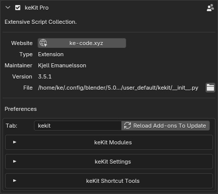NOTE: Dont forget to restart Blender after (re)installing! Required for some scripts.