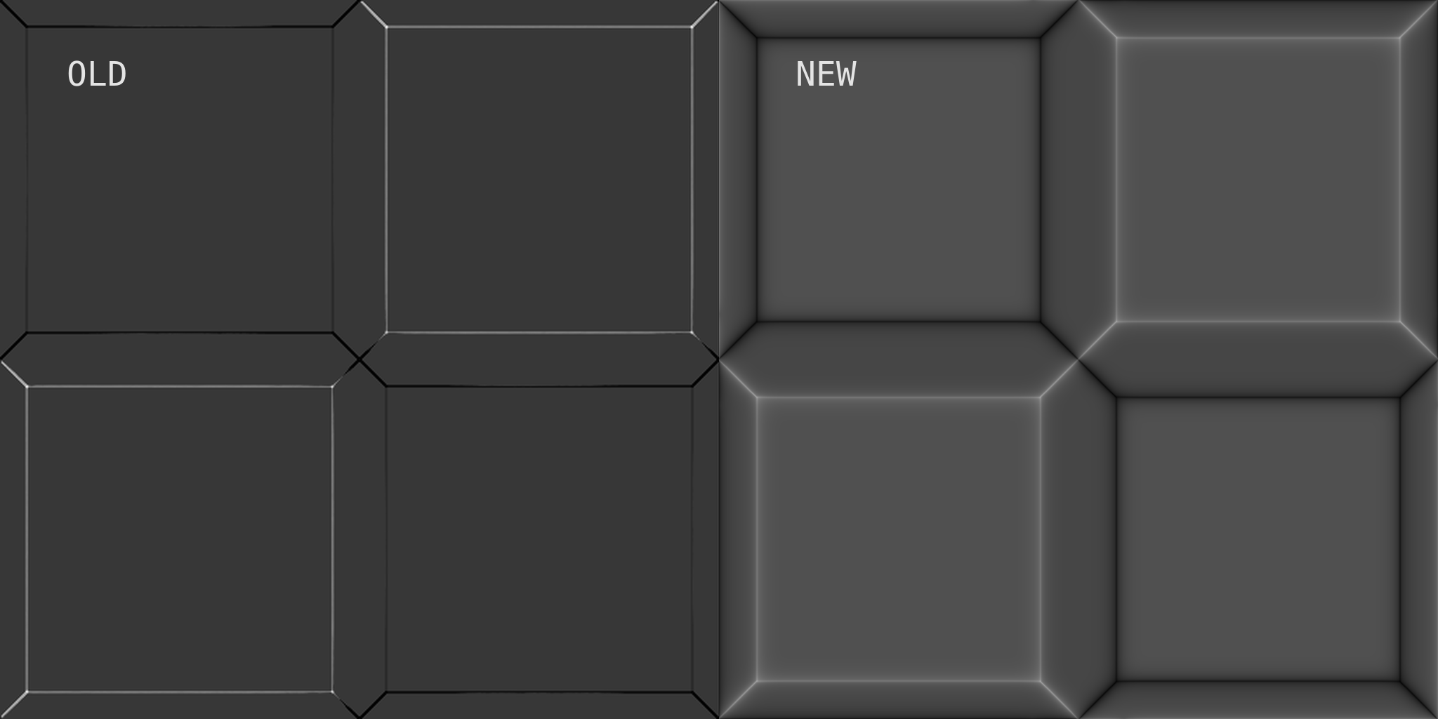 Layer 2 objects use a "fake ambient occlusion" approach (an "outer glow/drop-shadow" effect) -