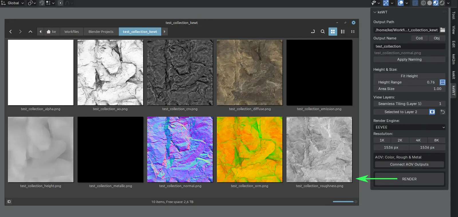 Note: The obj/collection name will be used as texture base name. (This can easily be changed later)
