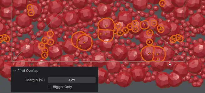 redo panel has options for margin ("overlap sensitivity") adjustment, and an option to only select objects larger the average.