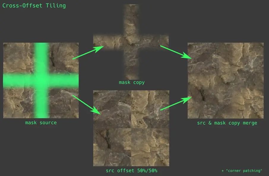 - This method works well for organic/noisy textures (without distinct patterns/features like bricks, panels, etc.)