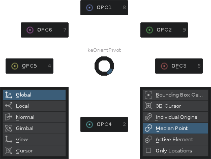 Orientations: Global, Local, Cursor & View (all else defaults to use Global)