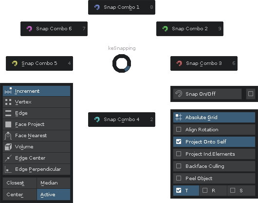 Snapping layout using built in snapping tools with an options panel.Complete blender snapping settings & Snapping Combos