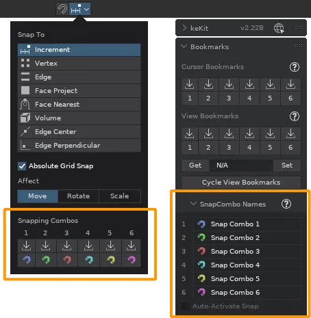- Toggle the Snapping Combo buttons: